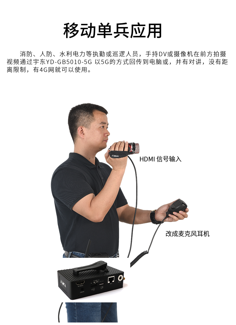 YD-GB5010-5G設(shè)備基于先進(jìn)的 H.265 視頻編碼技術(shù)和 5G 無線信道捆綁傳輸技術(shù)開發(fā)的新一代產(chǎn)品。支持支持 5G、4G 網(wǎng)絡(luò)模式,采用 H.265(HEVC)超低碼率,F(xiàn)EC 前向糾錯技術(shù),獨有的 UDP 快速冗余容錯,PID 控制的自適應(yīng)帶寬編碼和傳輸, 1M 輕松傳輸送 1080P 視頻。