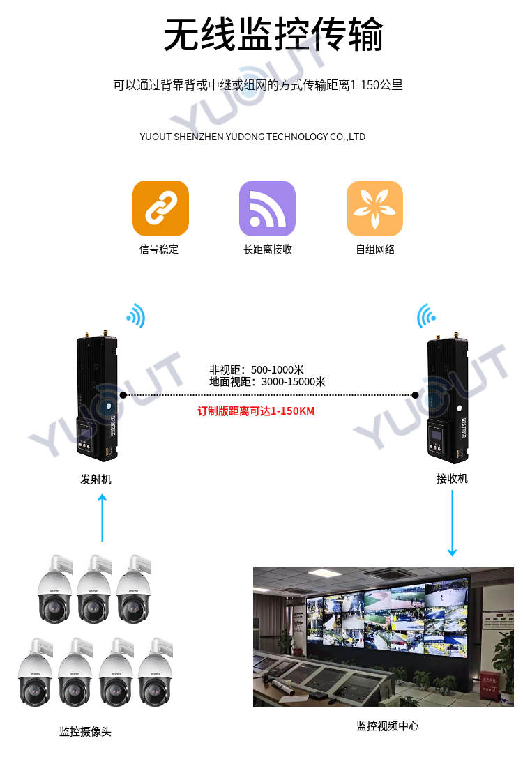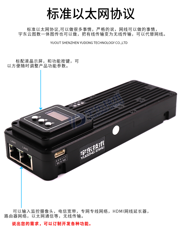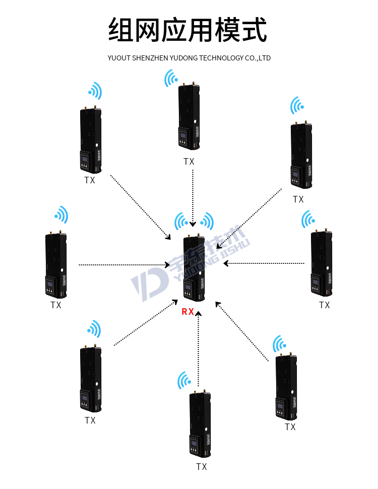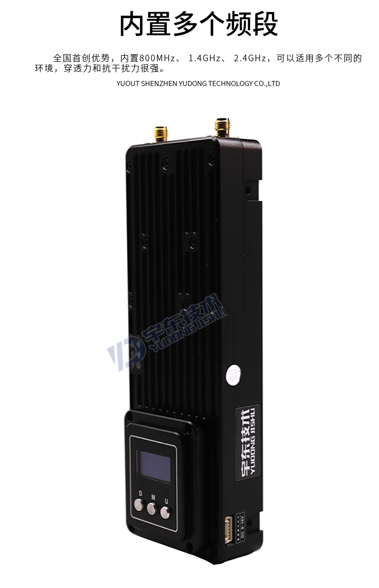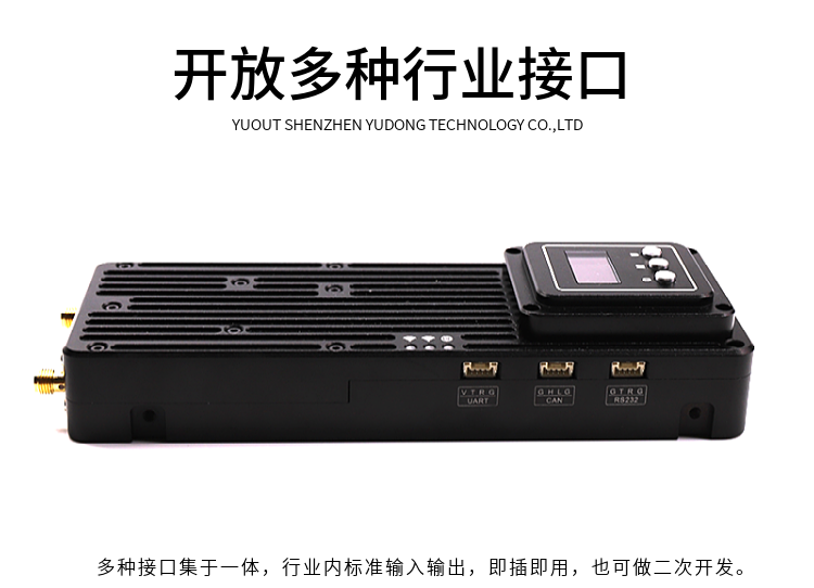 YDTD9000宇東視頻數(shù)據(jù)無線圖傳系統(tǒng)采用工業(yè)級無線高速率數(shù)據(jù)傳輸技術,非視距,非WIFI,集合正交頻分復用時分多址調制及MIMO多進多出容量技術,完全基于IP互聯(lián)網(wǎng)協(xié)議,實現(xiàn)全雙向透明通道寬帶傳輸。非視距:500-1000米;地面視距:3000-15000米;空對地:20000米。系統(tǒng)為純硬件連接,即插即用;創(chuàng)新性液晶一體化設計、豐富的CAN總線、RS-232、TTL電平接口,更好的用戶角度體驗。通道最大支持30Mbps吞吐量,可廣泛應用于工業(yè)自動化、工業(yè)機器人、無人機、視頻監(jiān)控等通信工作。