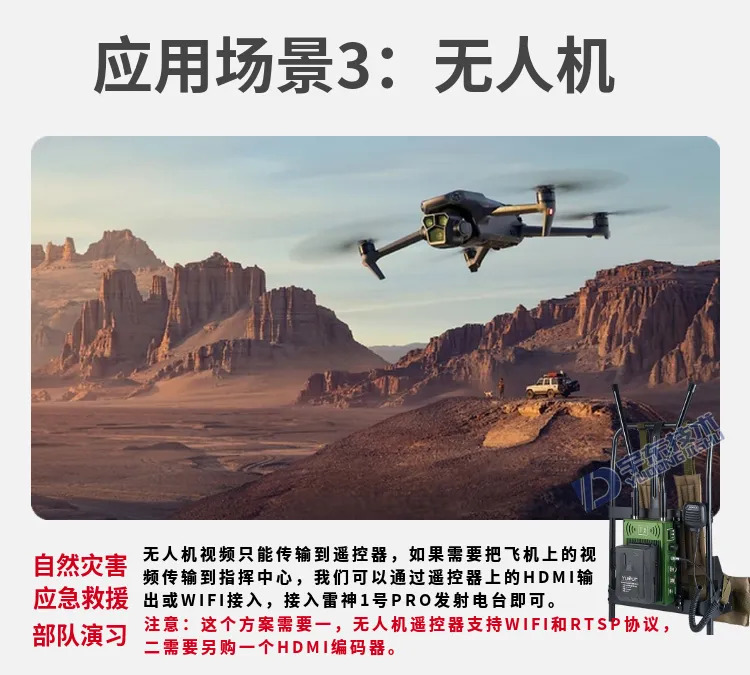 宇東技術(shù)雷神1號(hào)PRO背負(fù)式高清單兵無線圖傳電臺(tái),是公司針對(duì)應(yīng)急救援指揮、部隊(duì)拉練演習(xí)、公安、反恐作戰(zhàn)、消防救援、邊防執(zhí)勤、海警海關(guān)巡檢、森林消防等,在突發(fā)重大事件,斷網(wǎng)斷電,通信中斷的情況下,現(xiàn)場(chǎng)工作人員通過宇東雷神1號(hào)PRO單兵無線圖傳電臺(tái),可以和指揮部雙向語音通話對(duì)講,把現(xiàn)場(chǎng)采集的數(shù)據(jù)實(shí)時(shí)無線傳輸?shù)街笓]車/臨時(shí)指揮部大屏幕,讓指揮部領(lǐng)導(dǎo)對(duì)現(xiàn)場(chǎng)情況一目了然,節(jié)省了到達(dá)現(xiàn)場(chǎng)的時(shí)間,可快速做緊急指揮調(diào)度,最大限度的減少突發(fā)事件帶來的各種損失。